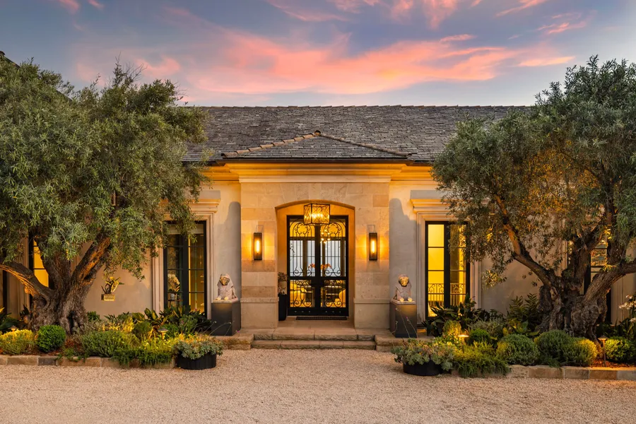 This sophisticated gated home features large-scale entertaining rooms with soaring ceilings and majestic gallery walls. Multiple sets of south-facing French doors open to breathtaking vistas and myriad outdoor entertaining spaces.
