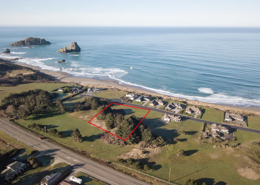 Stunning ocean views and beach access across the street. Beautiful 1.5 acre lot located at the end of Shoreline Dr. at The Beach! This lot has a slight slope with trees on the east side (back side) which provides privacy from Highway 101. Underground utilities and community water are available and conventional septic with forced leach field is required. This property has CCR's and the HOA fee is$600. Sign and more photos are coming soon! This is not a drive by property.