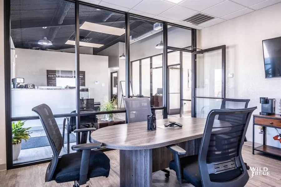 Modern and functional 2,000 sq ft metal office building situated on 2 acres just north of Eastland, near the Eastland Municipal Airport. Built in 2022, this commercial property offers a clean, professional layout with contemporary finishes including exposed black ceilings, luxury vinyl flooring, and glass-walled offices that create a sleek, open feel. The interior features five private offices, two large conference or team rooms, a spacious kitchen with granite countertops, a welcoming foyer with a reception area, and two restrooms. The layout is thoughtfully designed for efficiency and comfort, making it ideal for a growing business, professional office, or operations center. With plenty of parking and room to expand, this property offers both immediate usability and long-term potential in a strategic location. Seller will consider seller financing, dependent on terms.