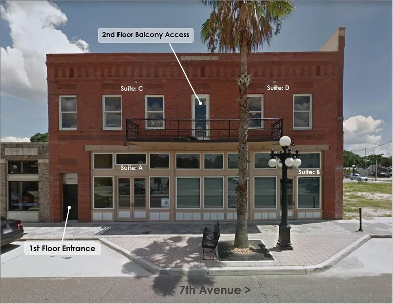 Boasting two 2nd floor spaces measuring 2,078 SF and 2,490 SF respectively :: These suites are centrally located in the rapidly growing Ybor District :: Ideal for a range of businesses, such as professional offices, light retail, or community services :: The building boasts attractive historic features to include brick and masonry construction, large windows offering plenty of lighting, a well-maintained balcony and exceptional views and frontage on the main drag of 7th Avenue ::