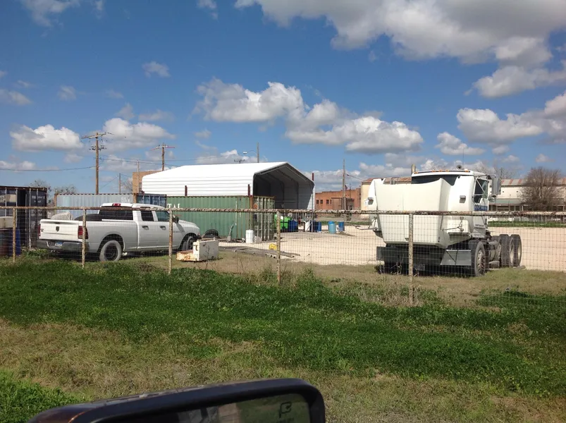 5 acres totally fenced, caliche base, city utilities , shop with office and 2 mechanic sheds in downtown Runge. Fronts on State Hwy 80 and Front St. Motivated seller, all reasonable offers will be considered.