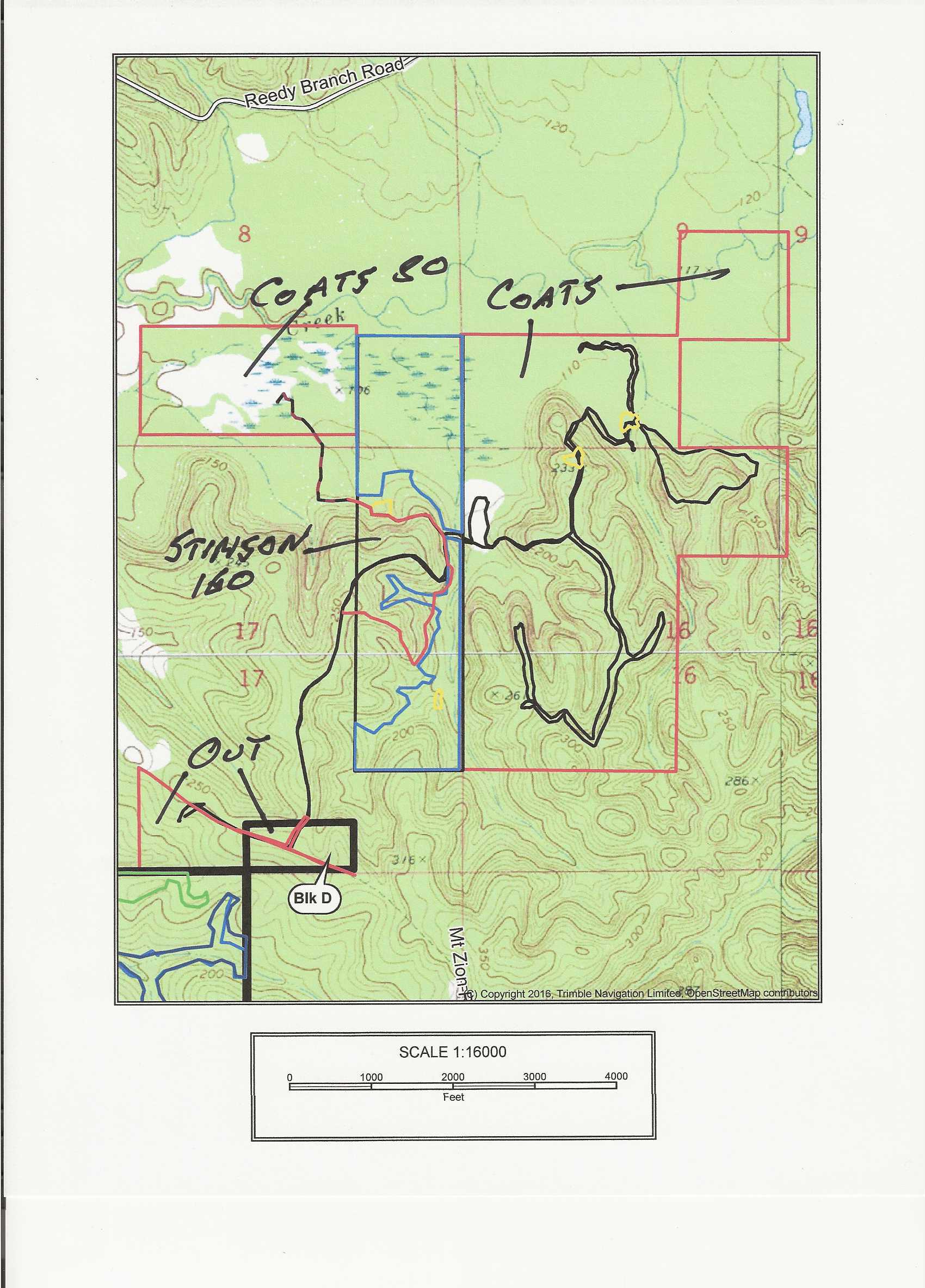 This unique property has 480 acres (plus or minus) and is located about 11 miles west of Grove Hill, Alabama and about two miles north of highway 84 in the community of Old Clarkesville. The timber stands are a mix of high value per acre mature pine and hardwood with some areas in merchantable pine plantation. There are numerous small streams and approximately ten acres in several food plots. The topography is flat to hilly. Satilpa Creek runs through a portion of the property and offers good wade fishing opportunities for small bass and bream. The soils are very fertile and the site index for growing timber is very high. Hunting is excellent for deer, turkey, hogs. And small game. There is a small but growing population of black bears. One of the owners of this property is a licensed real estate agent. For more information or a viewing please call Pete Coats at 251-564-4552.