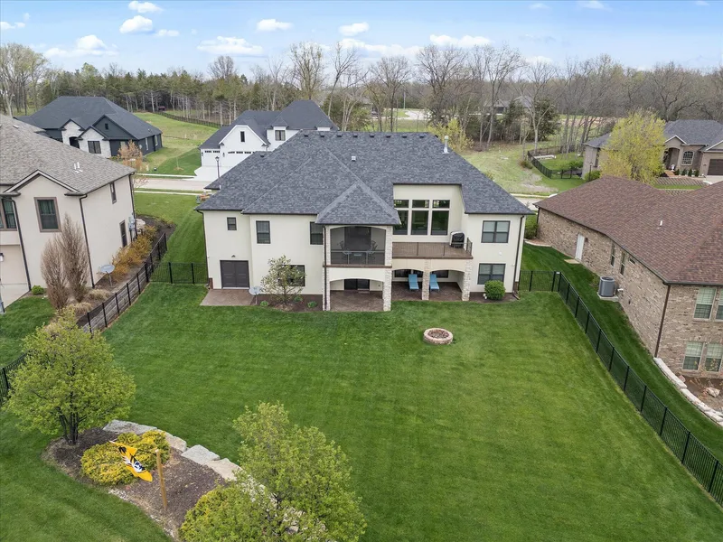 This stunning custom-built home offers elegance, comfort, and breathtaking views, located on the 14th tee of Old Hawthorne golf course. With 5 bedrooms, 3.5 baths, and 4,254 sq. ft., it features 11-ft ceilings, large windows, and a stone gas fireplace. The chef's kitchen opens to a beautiful dining area. The main level includes a primary suite with laundry access, 2 additional bedrooms, 2 full baths, and a powder room. The walkout basement offers a family room, wet bar, 2 bedrooms, full bath, second laundry, and John Deere room. Outside, enjoy covered decks, a fenced yard, fire pit, and optional access to golf, pool, fitness, and clubhouse dining.