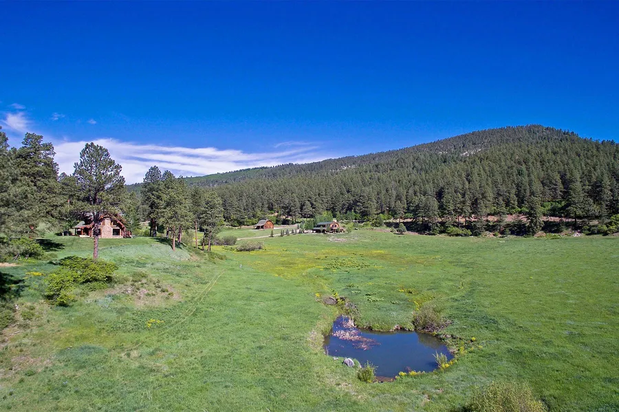 This 246-acre ranch has some of the most beautiful rolling and naturally irrigated meadows youll find in the Pine River Valley. The fenced property includes several year-round ponds with water rights and ditch rights, 40 acres of organic hay, varied topography including pine forest with aspen groves, meadows and beautiful rock outcroppings. There is abundant wildlife with mule deer, elk (in the middle of the elk migration path), black bear and other small game. The valley views are stunning and the meticulous care of the property and improvements make it a one-of-a-kind estate and most welcoming environment. The property features a beautifully constructed 4,476 SF custom log, 3 bedroom and 3.5 bath main house with additional first floor optional room that may be used as first floor master bedroom, office, or recreational room.; a 2,800 SF guesthouse with 2 bedrooms, 1.5 baths; and, a cedar horse barn with 2 stalls, workshop and hay storage. This is a serene country setting, offering great privacy and magnificent views, yet still close to historic downtown Durango and Bayfield. The ranch is a perfect property for horses or small cattle operation and it has great hunting opportunities. There is a 40-acre option available with all of the amenities listed for $2,349,000.