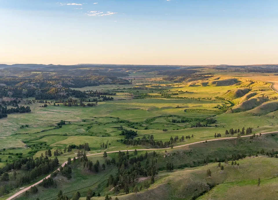 Old Sundance Ranch spans multiple pastures and parcels and includes an excellent road system for traveling across the ranch. The east side of the ranch is timbered and evolved into grassy plains to the west. Across the vast contiguous acreage, there are approximately 40 sizable pastures. Although the ranch is easily accessible from the interstate, it is large enough that the three county roads provide great access to the pastures, yet the ranch is very private. West of Headquarters, there are 1,200 acres of grass hay meadows along Inyan Kara Creek and a dry land hay pasture that could be used for grazing or hay production. Sitting at the western edge of the Black Hills, the ridges are covered with stands of large ponderosa pines and the bottom grounds are spring-fed, with lush grasses and a variety of brush and small deciduous trees.