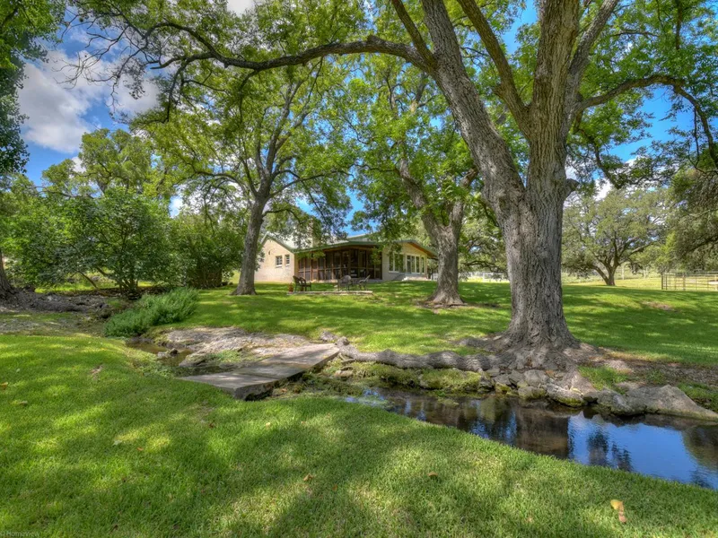 The original owners had wisely placed the headquarters at the bottom of a hill to catch the heavier cool air, and next to a flowing spring for water, with massive oaks and pecan trees providing cool shade. Made of huge limestone blocks and adobe brick, the ranc...