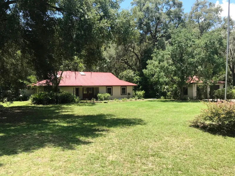 TRUE FLORIDA BEAUTY AWAITS! Loads of potential with this 2bed/2bath pool home on pristine park-like 4.87 acres (2 lots) in Hernando (Citrus County). Grand tree lined drive opens to beautiful green grass. As the home comes into view, you will immediately notice the solid construction topped with the durable metal roof. The foyer, massive great room and stone wood burning fireplace impress upon entry. The kitchen is huge, with plenty of room for eat in. The Master features two walk in closets, double sink granite vanity & large shower. Nice sized guest bed & guest bath features an atrium for ultimate relaxation. The great room opens to the vinyl & screen Florida Room which overlooks the screened lanai & solar heated pool. The 28 x 30 detached 2 bay garage/workshop pushes this property way over the top! The grounds are amazing with Oaks, Magnolia, Pines, & more. Old concrete block structure for extra "barn storage" or whatever your imagination conjures up. Don't miss this unique property.