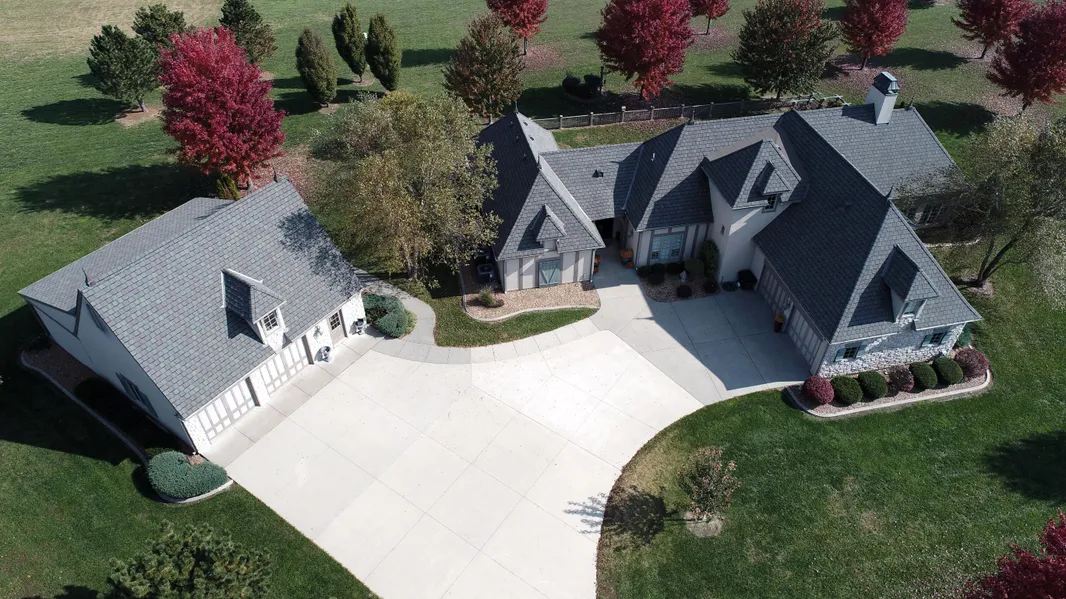 Prepare to be amazed with this beautiful Estate Home. All the details are covered: granite kitchen, stainless appliances, gas fireplace, a perfect sun room to watch the sunrises & sunsets that are amazing from this home. Large Master Suite with heated bathroom floors and a 11x17 walk-in closet. The second level has 2 bedrooms & an additional full bath. The exterior is equally amazing with a 70' concrete patio with 50% of it covered, with a view of 2 of the 4 ponds in the Subdivision. A 2-car heated attached garage and a 2-car detached garage with additional mower & equipment storage, and a concrete storm shelter. Lot includes over 50 trees professionally landscaped; concrete edging and concrete drive. New roof, guttering & down spouts, 3 new AC units & 2 new furnace units! A once in a lifetime opportunity!