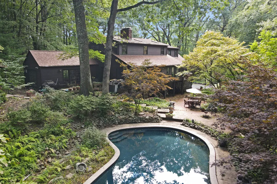 This one-of-a-kind custom home is perfect for a buyer looking for an investment in a special property, full of character inside and out, in a secluded, magical setting that can be renovated all at once or upgraded over the years. Views from every window highlight the natural beauty of the home's sylvan setting on a scenic unpaved road and with skylights and French doors, fill the home with plentiful natural light. The well-conceived floorplan is designed with the evolution of residents' needs in mind and includes generously-sized rooms, gathering spaces distinguished from private living space, options for different living arrangements and including in-law suites and home offices, and multiple connections to decks and patios. Additional features include hardwood floors on first and second floors, great room with vaulted ceiling and brick floor, walkout basement with bluestone flooring wit...