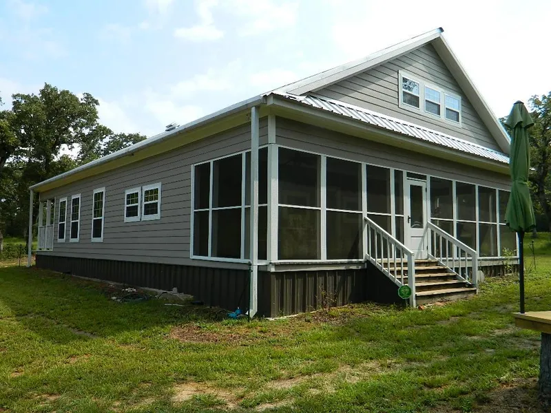 Unique home is a farm house that was lovingly moved in 1998 from Centerville to its current location on 46.96 acres +/- to begin a restoration project which included rebuilding the roof (metal) and wide porches (back porch is screened in) and reinforcing the first floor to support a second story. It stands on a firm foundation of 2 foot deep reinforced perimeter beams. The current owner has lovingly and skillfully completed the restoration with new windows, Smart LP siding, vinyl plank flooring for easy care, lots of new insulation throughout, new water lines and in May 2020 new central air and heat. The colorful main floor has 2 bedrooms, 2 bathrooms, a living room, large eat-in kitchen with farmhouse sink; new appliances (included), and a laundry room (washer/dryer included); the second floor has 2 bedrooms and 1 bathroom and a huge game/family room. In total, the home can sleep up to 18 people. Appliances, furnishings and other non-realty items convey with the home - list is available upon request.