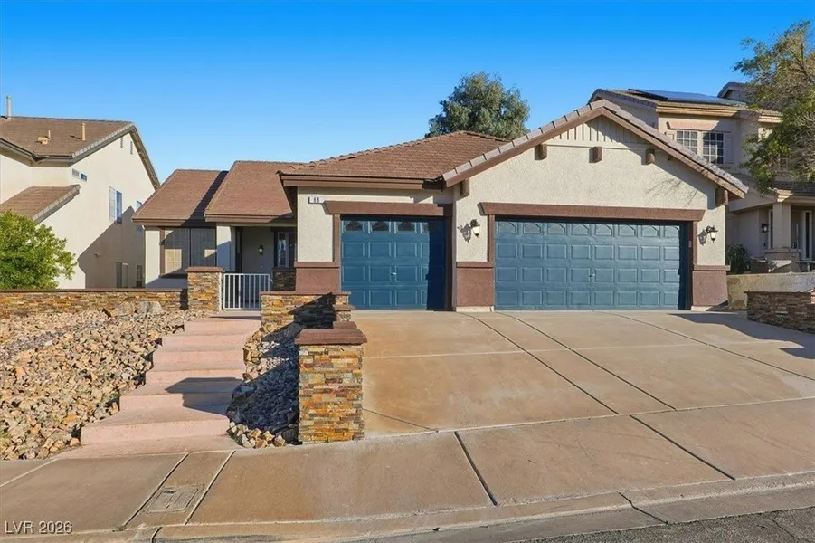 Welcome to this wonderful one-story Henderson home that perfectly blends style, comfort, and convenience. With no HOA, this property features 3 bedrooms, 2 bathrooms, and a 3-car garage, along with an inviting courtyard entry. The open floor plan seamlessly connects the spacious living room with a cozy fireplace—to the dining area and kitchen, creating an ideal setting for entertaining or enjoying quality time with family. The generously sized primary suite offers a walk-in closet and a beautiful bathroom with dual sinks, a separate shower & soaking tub. Step outside to the covered patio, perfect for relaxing or outdoor gatherings. Ideally located in a vibrant community near shopping, beautiful public spaces, and with easy access to major freeways, this home truly has it all.