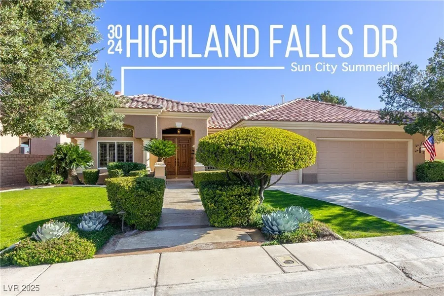 Experience one of Sun City Summerlin’s Rare Wendover View Lots—Available for the first time and cherished by its Original Owner. Set on a premier street with Sweeping Mountain, Golf Course, and Strip views, this expanded floor plan offers bright effortless living. The 2 Bedroom + Den layout includes an office with built-ins, a Generous Primary Suite with backyard access, and a comfortable guest room. The kitchen blends warmth and function with Walk-Up Counters, a Center Island, and abundant cabinetry. Upgraded Finishes throughout, Grand Double Door Entry, California Shutters. An oversized patio with breathtaking views over the 8th and 9th fairways. Ideal for morning coffee or sunset entertaining. A 2.5-car garage with golf cart space and a pet-friendly yard complete this exceptional home in one of the community’s most desirable locations. This rare opportunity offers a lifestyle of comfo...