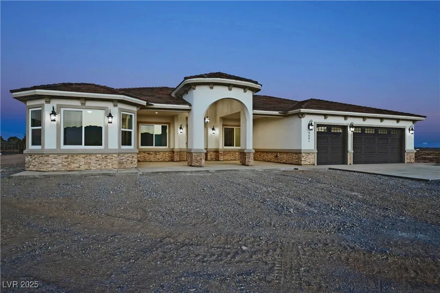 Stunning New Custom Build on 1 Acre with Modern Upgrades Welcome to this beautiful brand-new custom home offering over 2,400 sq. ft. of thoughtfully designed living space on a full acre on the south end of Pahrump. Featuring 4 spacious bedrooms, 3 bathrooms, and an oversized 3-car garage, this property blends modern luxury with functionality. Step inside to an open floorplan highlighted by an elegant electric fireplace, a chef’s kitchen with farmhouse sink, veggie prep sink, wine refrigerator, and a walk-in pantry with automatic lighting. The smart home system ensures convenience and efficiency, while the variable speed pump/well adds energy savings. The primary suite includes a walk-in closet with automatic lighting and a spa-inspired bath. Outside, enjoy breathtaking mountain views from the covered patio complete with ceiling fans—perfect for relaxing or entertaining. This home combines style and comfort with advanced technology, making it truly one of a kind.