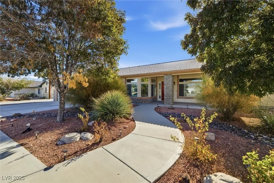Beautiful 2,932 sq. ft. 3-bedroom, 2¾-bath home on approx. ½ acre! Features a landscaped front yard with mature trees and stone exterior. Interior offers tile throughout, granite countertops, newer appliances, central vacuum, and intercom system. Spacious family room with gas fireplace, large office with built-ins, and two primary suites with crown molding. Backyard is ideal for entertaining—bar area, gas fireplace wall, pool with waterfall, plus cross-fenced privacy, storage shed, extra 2-car garage, and RV parking.