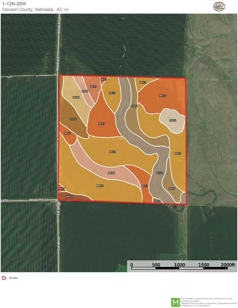 A great opportunity to add an outstanding pivot-irrigated farm to your land holdings. The farm is located in Dawson County, which is known for its fertile soil and favorable climate conditions for crop production. This farm offers good access off a gravel road, is near several competitive grain markets and includes all electric irrigation equipment with the sale. A majority of the farm is comprised of productive Cozad silt loam soils.