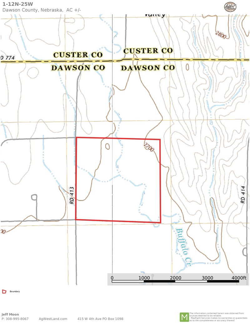 Southwest 1/4 Section 1, Township 12 North, Range 25 West, Dawson County, Nebraska