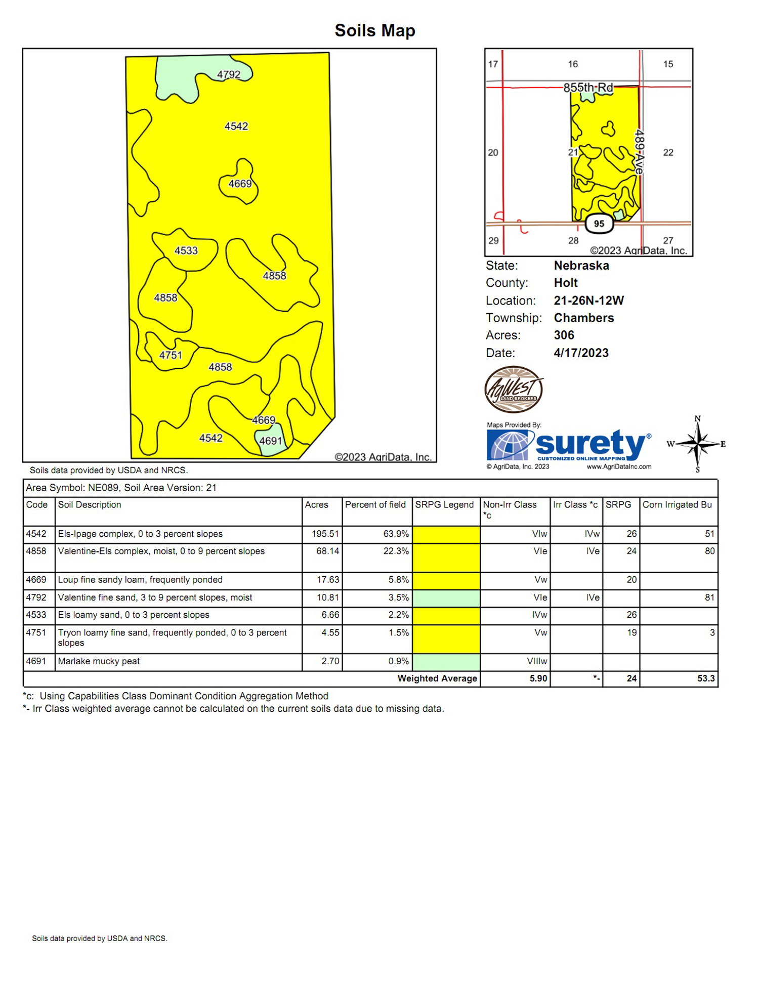 Research Parcel InformationLocated approximately 1 1/2 miles east of Chambers, Nebraska. The property is on the north side of highway 95.