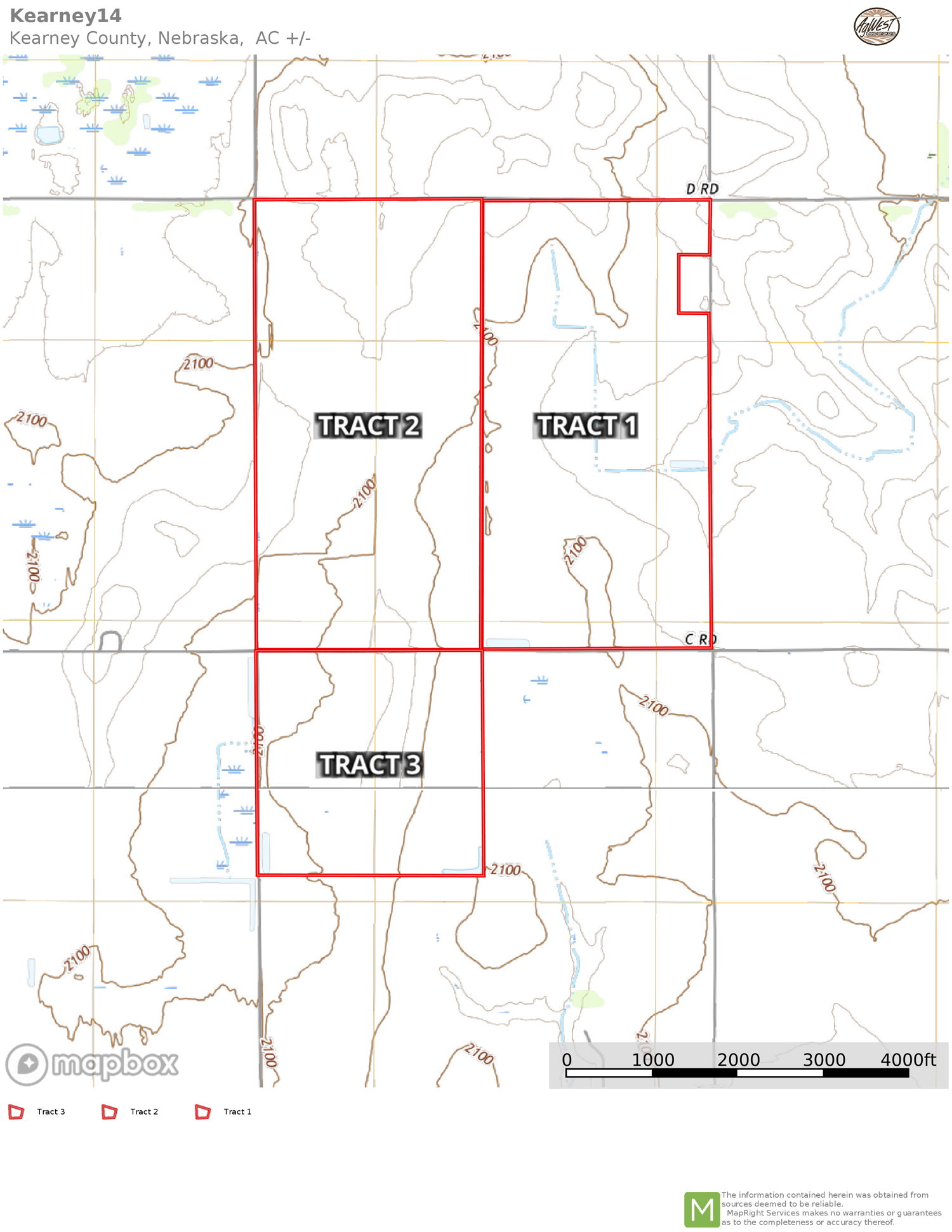 Property Directions From the town of Norman in eastern Kearney County, travel 6 miles south on 40 Road to D Road. Turn east and go 2 miles to 42 Road. Tract 1 is located on the southwest corner of D Road and 42 Road.