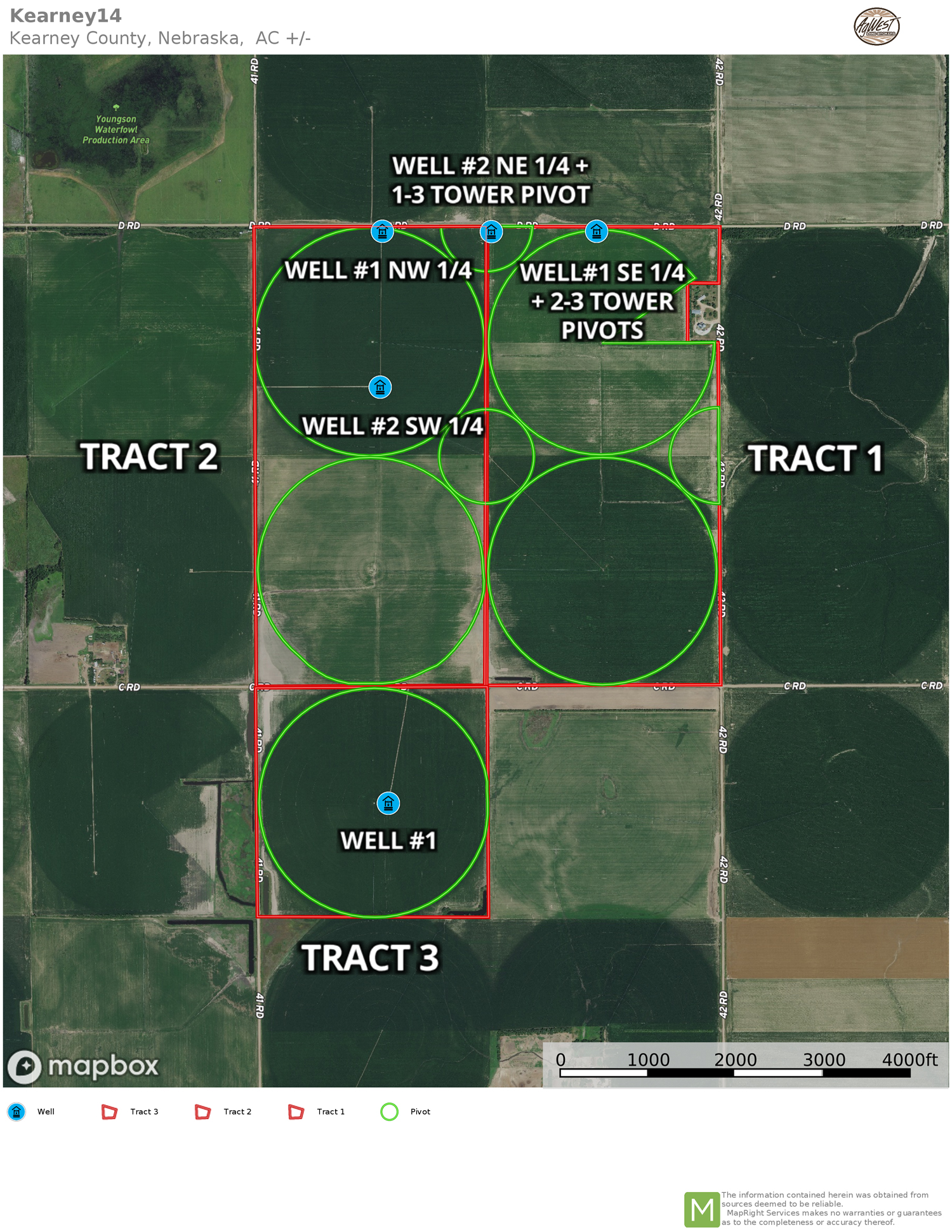 AgWest Land Brokers is proud to offer this prime Kearney County farm for sale by online auction. The farm will be sold as 3 individual tracts and will not be combined. This level to nearly level farm has highly productive silt loam soils and is irrigated by 8 pivots. The farm has great access and is in close proximity to grain elevators, ethanol plants, feedlots, and specialty grain/organic grain markets. Dont miss this rare opportunity to make a great addition to your farming operation!