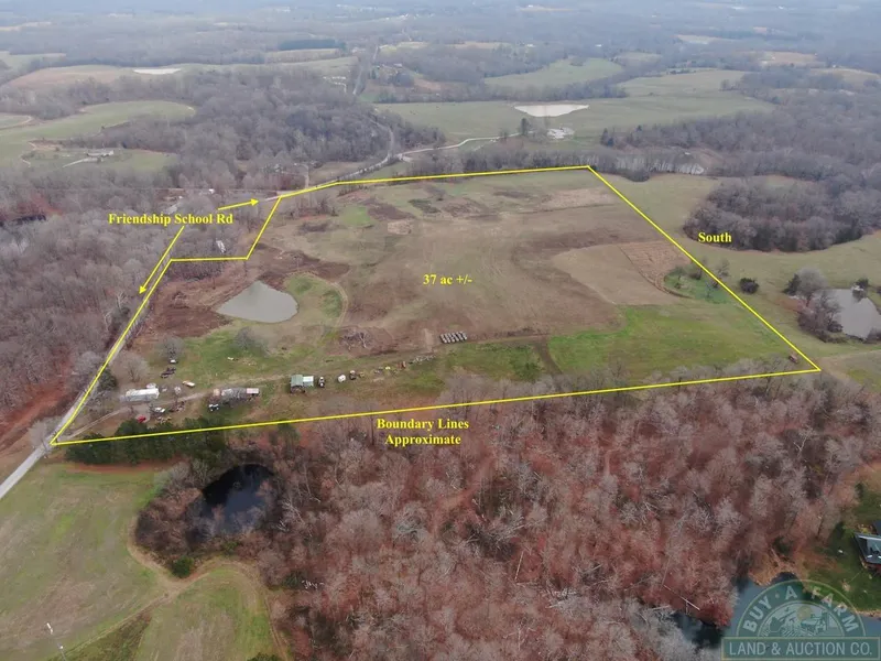 The property is 2 miles south of Anna IL on Route 51 and then east on Friendship School Road which borders the north boundary of the property. There are 37+/- acres of gentle rolling hills with 23.5 acres of tillable and rest in pastureland. There are good building sites, a decent size pond and plenty of room for livestock. At present time there is a mobile home and several portable buildings that will be moved off the property.