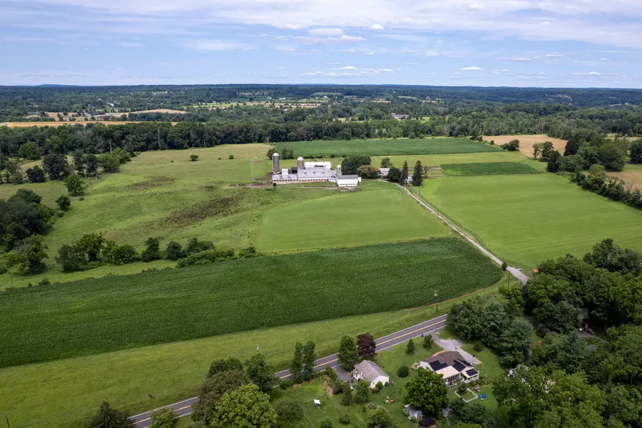 High above the banks of the Delaware River, in the heart of Hunterdon County’s rolling countryside, lies a remarkable piece of New Jersey’s agricultural history. For more than a century, this 193+acre dairy farm in Sergeantsville has been a pillar of hard work, tradition, and resilience. Now, with a bit of care and vision, it stands ready to be restored to its former glory. Still brimming with potential, this farm has all the infrastructure needed to reclaim its past as a thriving dairy operation. Anchoring the property are three towering silos and a classic dairy barn, complete with a milkhouse and a hay loft capable of storing up to 12,000 bales of hay. A machine’s barn, a pole barn, a four-bay tractor garage, and a well-insulated produce shed provide ample space for equipment, feed, and storage. The farm also features a dedicated feedlot and an additional barn, ensuring that every aspect of a working dairy is already in place. Newer fencing has been installed around the cattle yard. At the heart of the farm, the antique farmhouse is a testament to the passage of time, with original doors, fixtures, and wide pumpkin pine floors. Though currently configured as a three-bedroom home with additional rooms used for storage, a full restoration could recreate the four+ -bedroom house of generations past. Newer 200 AMP services has been installed. Beyond its structures, the land itself is bucolic and picturesque. Perched on a scenic ridge, it enjoys sweeping vistas of the Delaware Valley, with gently sloping pastures. Whether cultivated for dairy, crops, or a diversified agricultural enterprise, this property offers everything needed for a new chapter of farming success. There are 3 separate lots: Lot 0006/Blk 00053 comprises 99.60 acres / Lot 00005 / Blk 00053 comprising 92.51 acres (both these are farm assessed for a total of $2,446/year) and the 3rd is lot 0005/Blk 00053 1.82 acres where the house stands and taxes are $14,105/year. An additional 10 acres is being added under a Stockton resolution.