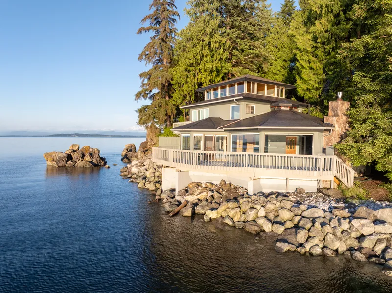 A rare chance to own a true waterfront home with over 300 feet of shoreline and breathtaking views stretching from Mt. Baker to Vancouver. This 2-bedroom, 2-bath coastal retreat sits directly over the water—immerse yourself in the soothing sounds of waves, fish from your own oceanfront deck, and watch marine life drift by.