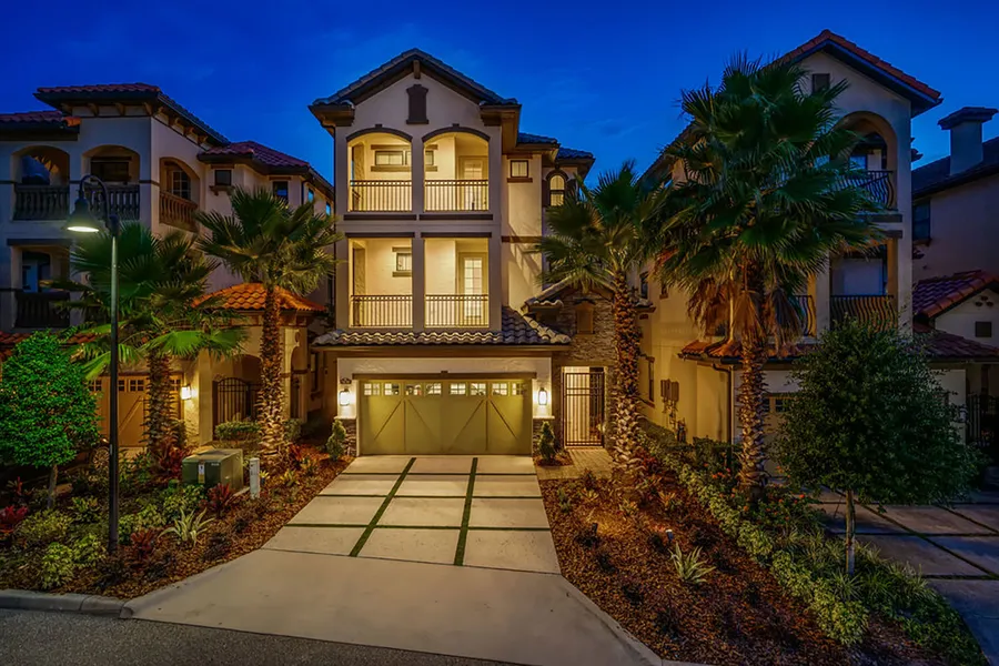 This gracious three-story residence is welcoming from the moment one steps into the front door. The entry gives way to the modern interior that brings together exceptional design elements, high ceilings and an open floor plan to create a functional living space that is ideal for the Floridian lifestyle. Once inside, your first view is the stunning infinity pool paired with a tranquil view of the lake surrounded by a lush nature preserve. Not only can you enjoy the views during the day, but at night a magical display of lights comes to life from Disney World. The gourmet kitchen boasts custom cabinetry, quartz countertops, high-end stainless steel appliances and a huge island. For the utmost privacy, the master suite encompasses the entire third floor with a sitting area, custom master closet and dual baths with a shared walk-in shower and access to a private balcony overlooking enchantin...