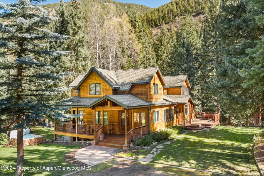 Two roads diverged in a yellow wood, and brought you home to Castle Creek. This serene, fairy-tale estate, located on the stunning headwaters of Castle Creek, offers abundant sunshine and is surrounded by hiking and cross country ski trails, all while being a stones throw from the popular Pine Creek Cookhouse. The beautiful three-level main home gazes over the tranquil creek and mature aspen and pine trees, while the detached one-bedroom guest home offers separation and privacy for friends or family. A grand, flat usable yard provides fantastic entertaining and sporting areas, while the backyard trail to the creek offers peace and solitude to relax or fish for brook trout. A three-car garage barn and multiple out-buildings provide ample room for all the toys you can bring. Recent upgrades include fiber optic internet cable, and a home oxygen system. If you're seeking the iconic Colorado mountain home, this is it.