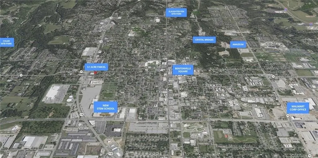 Exceptional development opportunity in the heart of Bentonville! This 3.1 +/- acre corner lot is ideally situated on SW I Street—directly across from Thaden Fieldhouse and just minutes from the new Walmart Home Office and the highly anticipated STEM School. With future zoning for commercial use and approximately 17,000 vehicles passing by daily, this property offers unmatched visibility and potential. The property currently features a residential structure with a pool and 40 x 50 shop building, but the true value lies in its prime location and future development possibilities. Positioned on a rare corner lot, this site provides excellent access and frontage on I Street, which is slated to connect directly to the new Hwy 612 Bypass. Whether you're looking to build a commercial center, mixed-use project, or capitalize on the area's rapid growth, this property is a rare find in one of North...