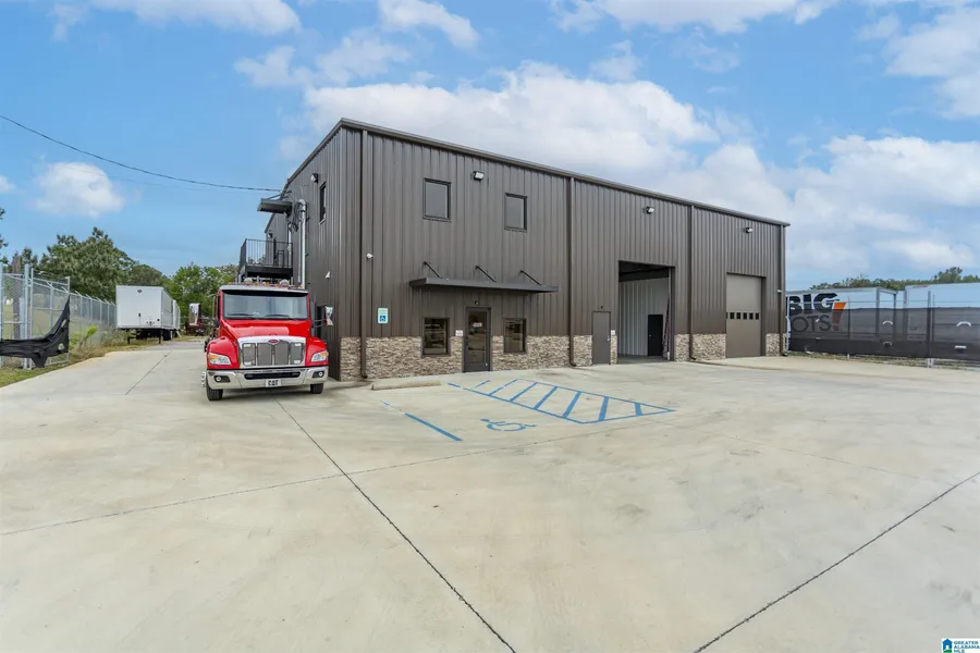 PRIME LOCATION!! High end construction completed in 2023, convenient to downtown Clanton, I65 and central location between Birmingham and Montgomery. B2 zoning allows property be used for many different business types. Stone accents on the exterior and dark siding really make this property stand out. 2 Acres total property, fenced around majority, area behind fence could be used for future expansion if needed or possible divided out and sold. Inside continues with no expense spared. Stained concrete floors throughout office area and shop. Entire building is HVAC including shop area. High end camera security system, led lighting and power bay doors on two large drive through bays and one smaller bay in the rear. Office area includes front separated waiting area and reception office with reception window, two more large offices and kitchen with one full bath with shower and two other ...