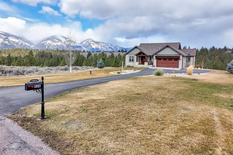 Nestled in the serene community of Florence, MT, this remarkable property spans 6.31 picturesque acres, offering breathtaking views of the Bitterroot Mountains. With 4,218 square feet of thoughtfully designed living space, this home boasts an open floor plan featuring 4 bedrooms and 2.5 bathrooms, perfectly blending functionality and elegance. The main level includes a dedicated office, a formal dining area, a charming breakfast nook, and a kitchen designed to impress. Highlights of the kitchen include beautiful granite countertops, a spacious eat-at island with a copper farmhouse sink, and ample space for cooking. The living area features a cozy natural gas fireplace, while the luxurious primary suite offers a generous layout and a private ensuite bathroom. Completing the main level are a convenient half bath and a well-equipped laundry room. The fully finished walk-out basement expands...