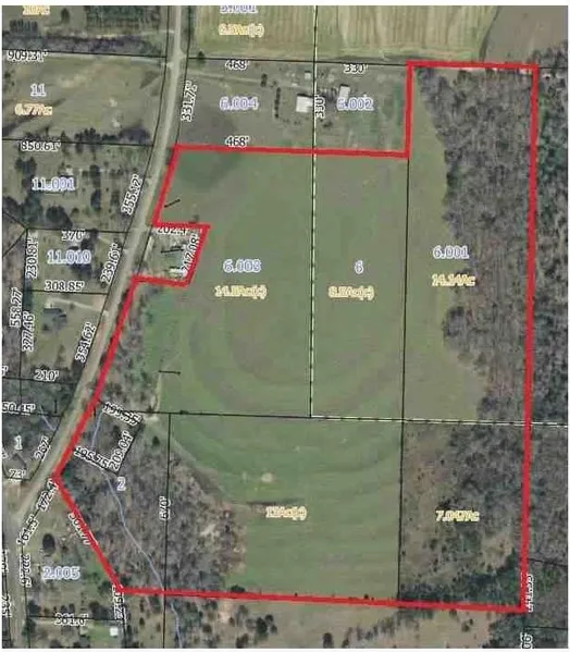 Approximately 61.5 acres of mostly open land. Large amount of road frontage if future owner wants to subdivide. Asking price is $6,500 per acre with final price determined by survey.