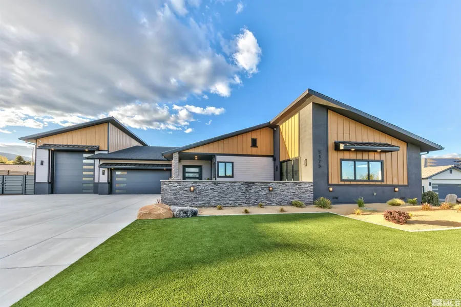 This home is a singular masterpiece, offering an unmatched living experience that you won't find anywhere else in Northern Nevada. The main residence and the guest house aren't just separate spaces; they're designed to foster a sense of connection and togetherness. The open-concept design boasts the latest trends, with walls of glass blurring the lines between the indoors and outdoors, creating a seamless flow into both living areas., Crafted for those who appreciate the finer things in life, this home offers unparalleled luxury, breathtaking views, and comfort. The main house is approximately 5,000 square feet with 4 bedrooms and 5.5 bathrooms, all conveniently located on one level. Additional features include climate-controlled wine cellar, state-of-the-art home theater room complete with a surround sound system and projector screen, a dream 1800+ sqft main garage with RV parking or parking for 6 cars plus an additional two-car garage. The great room, with oak hardwood floors, a kitchen boasting a massive quartzite island and sink, professional-grade appliances, and custom cabinetry, truly serves as the heart of the home. The large master suite offers unobstructed views of Mount Rose. The master bath has an oversized soaking tub, steam shower with multiple shower heads, his-and-hers vanities with quartz countertops, designer fixtures, plus heated floors in the bathroom. Unparalleled Guest Quarters, almost 1500sqft: This brand new two-room, one-bathroom guest house offers a private retreat with its own fully-equipped kitchenette and bar with quartzite counters, wine fridge, dishwasher and sink. The large entertainment area/living room is perfect for guests to gather and relax. For the car aficionado attached to the guest house is an additional dream: 6-car, almost 1400sqft additional garage space, with its own HVAC, hot and cold water and sprinkler system to protect your prized possessions. This state-of-the-art setup is perfect for practicing your swing on a golf simulator or working on projects, or a home for your car collection. Nestled between the main house and the guest house, is the captivating outdoor oasis with built in electric heaters perfect for entertaining, relaxing, or simply soaking in the breathtaking mountain views and night sky. This is more than just a house; it's a lifestyle. Are you ready to experience luxury living redefined? Buyers and their agents to verify all details independently.