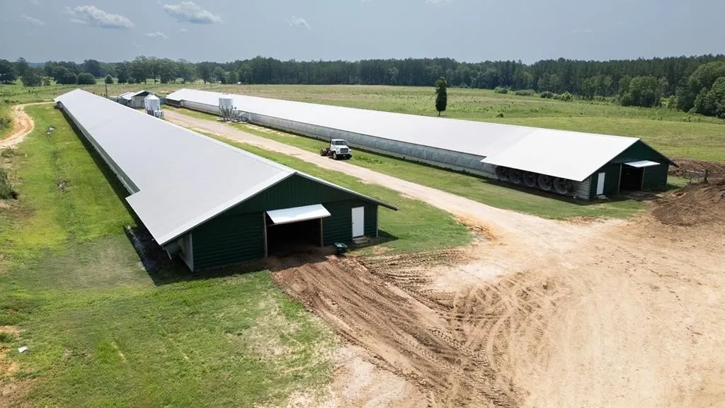 Two 5 year old egg houses sitting on 40 acres of land. Lots of room for additional houses or for farm animals