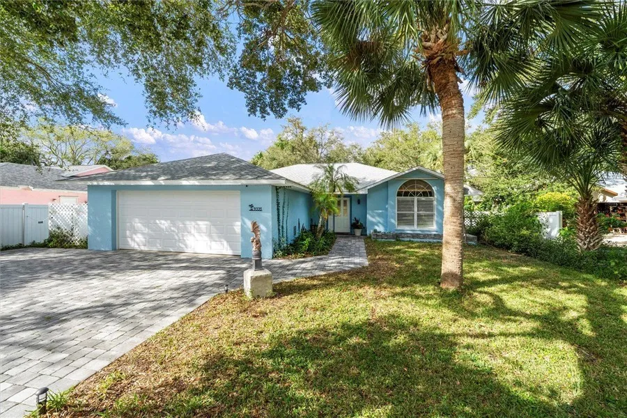 Unique home surrounded by old oaks is just a short walk to beautiful empty beaches! NO HOA! 2023 ROOF! 2021 AC! FULLY PAID FOR WHOLE HOME SOLAR POWER SYSTEM! Sunny dining room opens to large screened porch and covered spa. Split floor plan--primary suite w/custom bath, walk-in closet; 2 spacious guest rooms share an updated bath. Entertain in the private backyard with new deck, sun platform, spa, outdoor kitchen. Freshly painted exterior, new paver driveway and landscape lighting. 2-car garage w/built-in work bench, allowance for electric car charger. All home systems were replaced or updated.