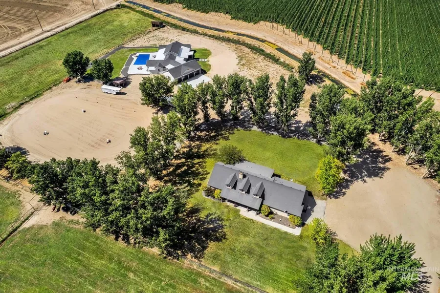 TWO complete homes on ONE 11.5-acre parcel—ideal for multigenerational living, rental income, or investment. This unique property offers two fully independent residences with separate garages, kitchens, and entrances. MAIN HOME (2023) features 4 beds including 2 primary suites, 3.5 baths, office, gourmet kitchen, luxury master closet with laundry access, and a 4-car garage. SECOND HOME (2005) offers 3 beds, 3 full baths, vaulted ceilings, custom kitchen with granite, and 3-car garage. Enjoy a 20x40 pool, patio, hookups for firepit and hot tub, mature trees, and irrigated landscaping. Property is fully fenced, and cross fenced, horse pens, irrigated pasture and riding area. No HOA or CCRs. Perfect for living in one home and renting the other, Airbnb potential, or hobby farming. Located in scenic Wilder, this is a rare opportunity for flexibility and income in one place.