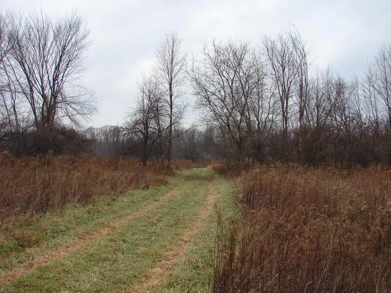 Leaving the front part of the property and heading north across the nearly one mile deep property to the north, there is corn on the left (west) and drops down into a grassy low area to the east, then back up again into more corn and CRP grasses.