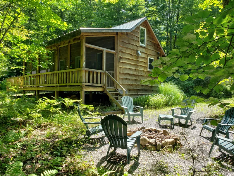 This property includes two camps on a 17 acre parcel. The smaller of the 2 camps has a kitchen with a woodstove, a bathroom, living room and an upstairs bedroom. For warm weather, enjoy the covered porch and small deck looking out over woodlands with a little creek that runs right by. The larger cabin also has a kitchen with a woodstove, a bathroom, living room and a downstairs bedroom plus an upstairs sleeping loft that can accommodate up to four, queen-sized beds. This camp also has a porch and a deck and both camps are finished inside in knotty pine and are nicely decorated. Solar power and a generator provide for lights. This would be a great getaway for a large family who needs more than one cabin or for one family who wants to have a guest cabin for visitors. Both cabins have immediate access to the Otter Creek State Forest and Otter Creek horse trail. The property is located near ...