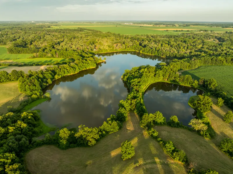The highlight of the property is most certainly the 25 +/- acre lake. Constructed in the 60s, this man-made lake is secluded and surrounded by beautiful timber that is mostly oak, with many access points. The diversity of fish in the lake includes bass, crappie, bluegill, and a variety of catfish, according to the landowner. It would be a beautiful backdrop for someone to build their dream home in the country and overlook the water. The lake is an obvious attraction for waterfowl throughout the year, being so large in a very great location for geese and ducks. Additionally, a 2.84 +/- acre pond stocked with the same fish makeup allows for another spot to enjoy on a smaller scale.