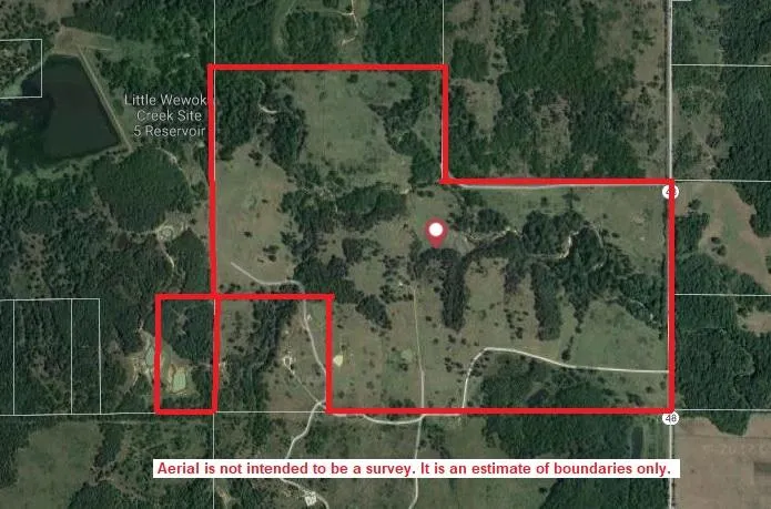 Outstanding 380 acre m/l ranch with over 2600 feet of Hwy 48 frontage! 7 ponds throughout the property plus Little Wewoka Creek winding and turning through the northern portion of the property. Its been leased for cattle but has plenty of hunting opportunities as well with a good mixture of wooded to open fields. Several established trails already in place for easy viewing and access. Just over an hour to OKC, an hour and 15 minutes to Tulsa or 3 and a half hours to Dallas and you never have to leave a Highway. Multiple sites to build your dream home and establish your own homestead!
