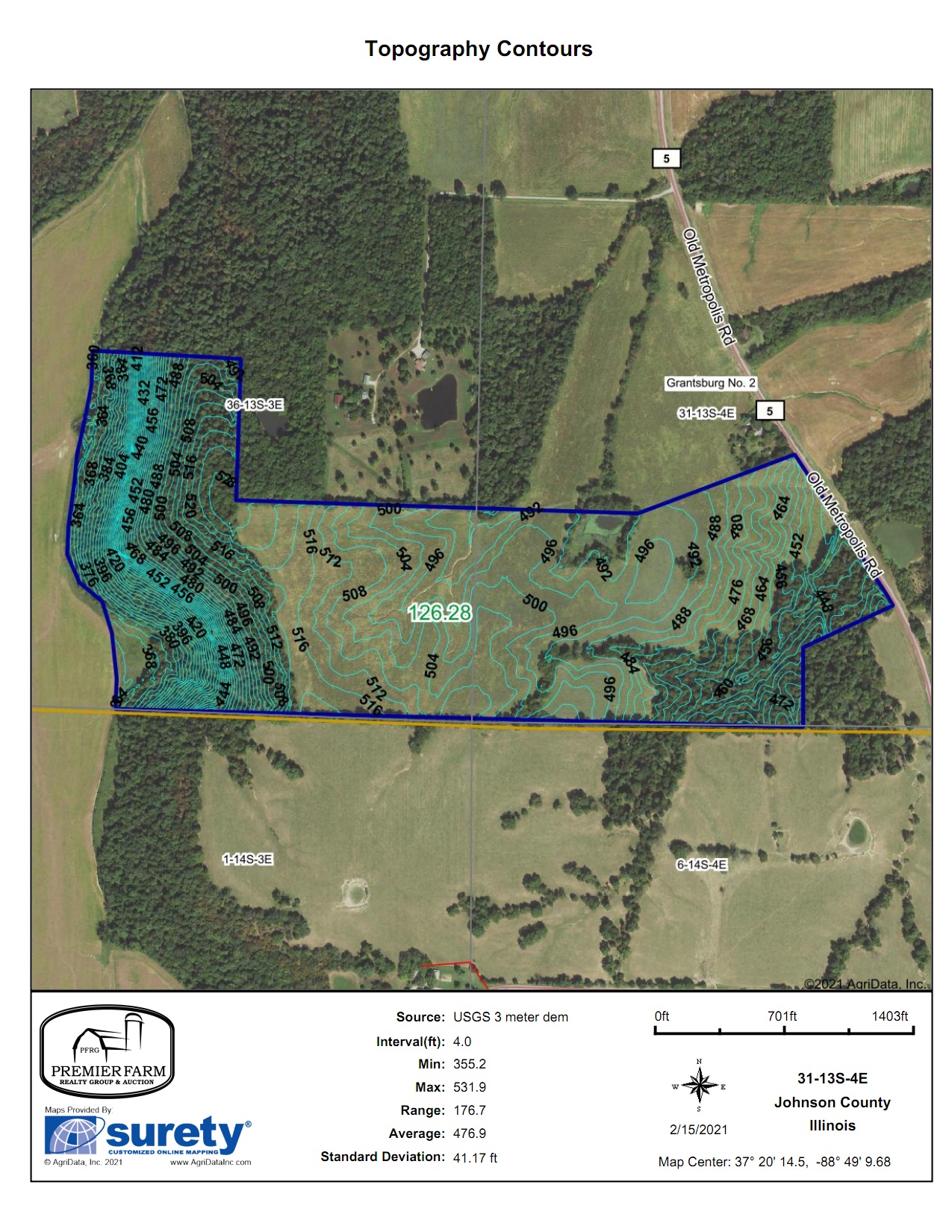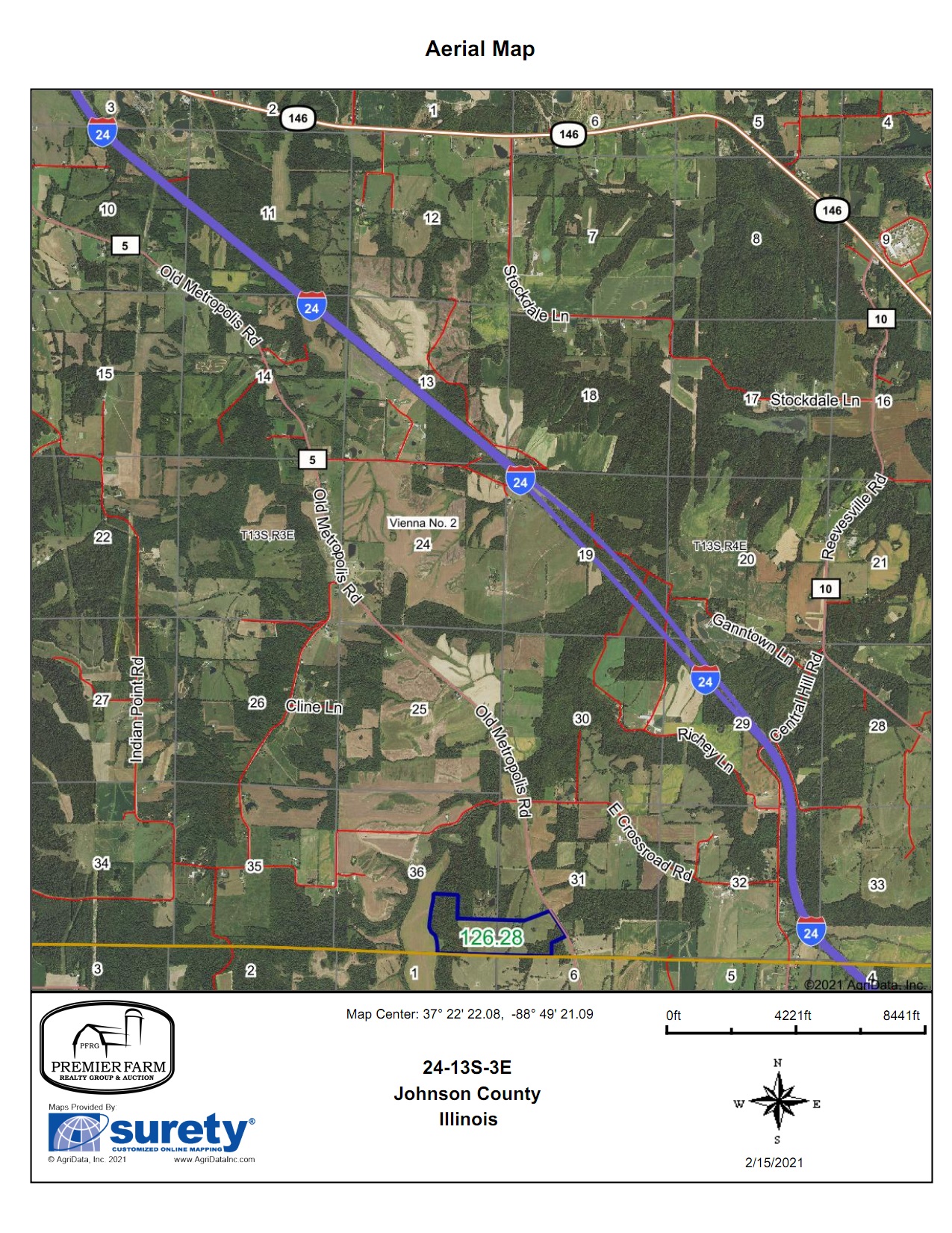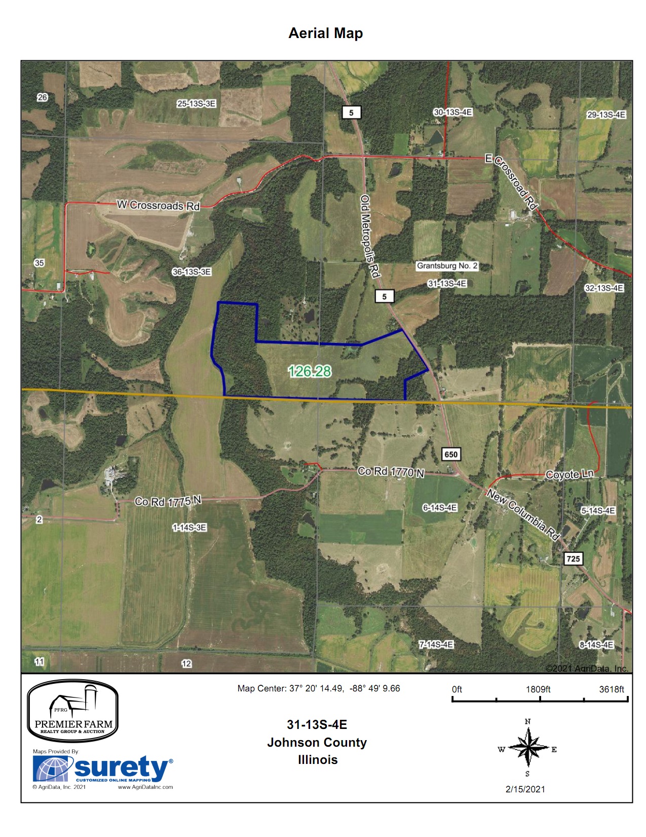 Located just south of Vienna on Old Metropolis Road, sits this 125+/- recreational paradise. There are currently 62.75+/- acres in tillable production, that creates a nice income. The balance of the is in timber, brush and a small pond. The timber stand consists of oak, hickory and variety of other hardwoods. The canopy is brushy with some clearings, providing excellent browse for deer and nesting and broodering habitat for turkey. There is a creek at the west side of the property that will supply water to the many critters that call this property home. There are areas that are ideal for food plots, and good stand sites near these areas no matter what the wind direction.