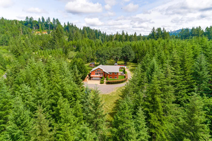 Gorgeous custom estate in private setting! Vaulted great room with wood stove and kitchen boasting stainless steel appliances, breakfast bar, granite and under-cabinet lighting. Spacious, versatile floor plan with master suite on main level. Deck and expansive patio overlooks beautiful views of sunsets and night skies. Additional parking with detached shop. Peaceful country setting with lifestyle amenities, including above-ground pool, new hot tub, greenhouse, fruit orchard and pond. Free-standing sauna is not included though is negotiable. ~40 minutes to coast!