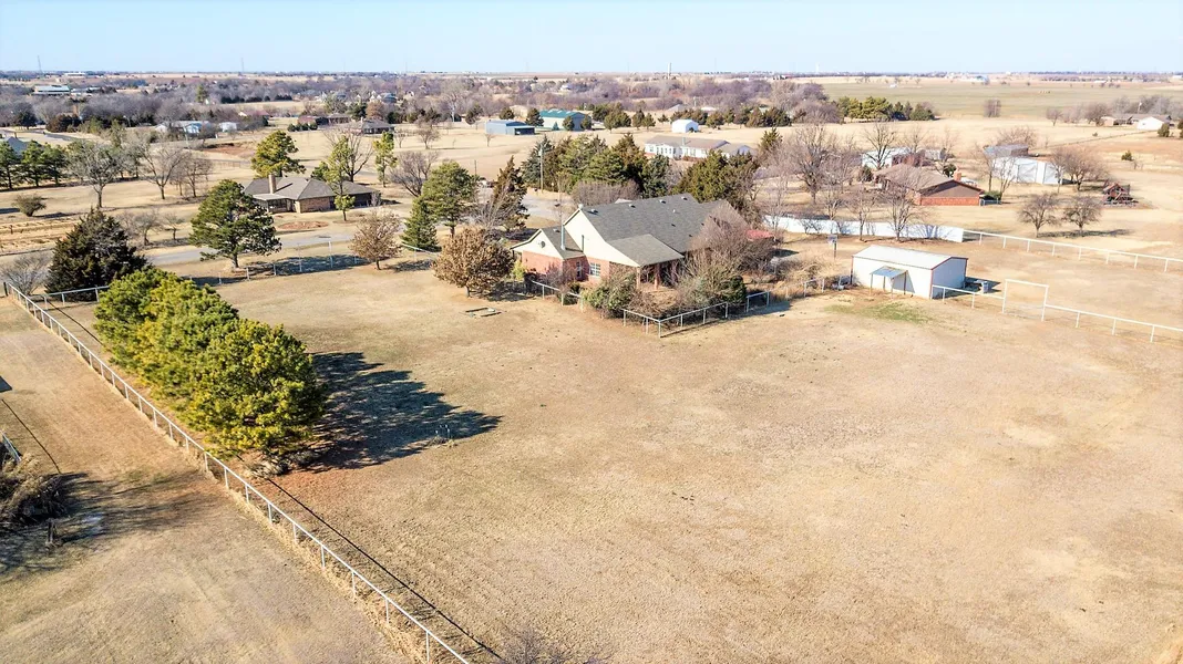 Outside, the property is fully fenced on the perimeter, and has a yard fence as well for small animals. There is a hot tub, and a 24x30 shop/detached garage. Storm shelter in the garage. There is no through traffic, and the property backs to a vacant field that is currently leased for farming. The neighborhood has other horses in it, so that would fit with the area.