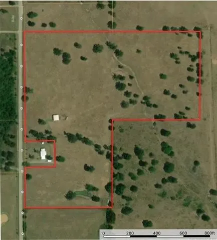 Improvements include a 40x40 metal barn wired for electric with pipe corral, allowing for immediate agricultural or recreational use. Outside city limits with no known deed restrictions, the property offers flexibility for a private ranch retreat, recreational estate, or future development. Strong location, extensive highway frontage, and infrastructure already in place make this a standout offering in northeast Oklahoma. Buyer to verify suitability for intended use.