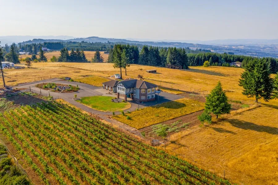 If you're seeking calm, safety, rural freedom and space for your lifestyle/family to grow, this is your new mountaintop view estate! Located on 20 usable acres. Central in Oregon's wine country, close to beaches, colleges, arts and some of the best outdoor activities America has to offer. Turnkey luxury, gated residence, lifestyle property with private 0.75ac Gewurztraminer vineyard and plenty of room for further planting, already deer fenced. Panoramic view, fenced pastures, large barn and 20' x 40' workshop.