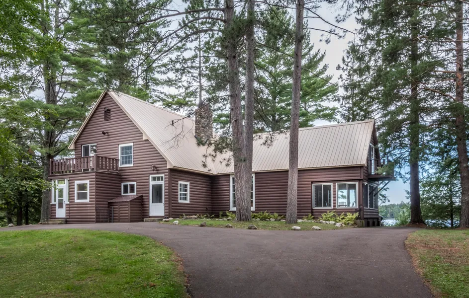 Set high on a prominent point at the end of a large private bay is a true Northwoods wilderness lodge originally built by the Chicago Bismarck Hotel family. This 52 acre property with 3,000 feet of water frontage on beautiful, and virtually private Owl Lake, is for those requiring absolute privacy and tranquility. The great room with heavy crossbeams and twenty foot ceilings is complete with woodburning fireplace and breathtaking lake views. Imagine cooking breakfast on the large commercial stove and gathering in the dining room with the original hotel china and stemware. The home includes 5 bedrooms, each with its own deck or screen porch. The second story also includes a library and office space. Six outbuildings including a tackle house, log storage, toolshed, 3 garages, and a 2-bedroom guest cottage. An additional 245 acres and 12,000' of water frontage available. (MLS#146940)