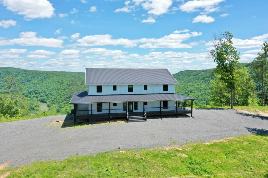 OZARK MOUNTAIN PARADISE with a breathtaking view of the Little Red River! This 4 bedroom, 3 bathroom home with a wrap around porch was built in 2021 & sits on 111.75 private acres with the most remarkable view! The home features an open floor plan with large windows in the main areas, a native stone woodburning fireplace, custom kitchen cabinets, stainless appliances, large island, and lots of storage/pantry space! The master suite has a spacious bedroom leading out onto the porch, full bathroom offering his/her sinks, walk in tile shower, claw foot soaking tub, and large walk in closet with custom built in shelving! Upstairs is 2 bedrooms, full bathroom, and a bonus room that would make a great office, craft room, or 5th bedroom! The home is very private but easily accessible! The property offers excellent hunting opportunities with NO RESTRICTIONS & FIBER INTERNET! This property would make an excellent getaway, Airbnb, or forever home!