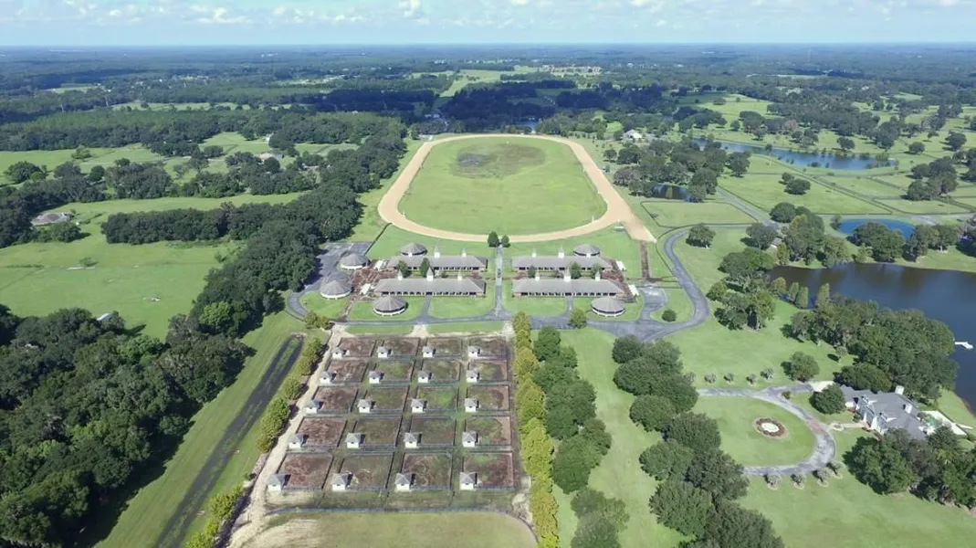 Exceptionally nice private housing for guests, managers and staff (13 residences in all) plus a 7000 square foot dormitory with 22 rooms to accommodate a large-scale operation. Training complex features 116 stalls, 3/4 mile dirt track, 1 Mile turf track, 4 covered hot walkers, round pens, and lush paddocks.