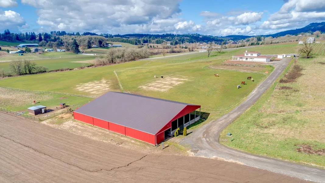 Panoramic views abound from this gorgeous equestrian estate! ~42 usable acres with potential for expanding pastures, hay, vineyard, winery, hazelnuts or other crops. Acreage features southern exposure and coveted Chehalem Mountain Winegrowers AVA location. Ideally situated for a wine country Bed & Breakfast or for a wine connoisseur's primary residence at the very entrance of the preeminent wine tasting and vino tourism routes along Calkins Ln, Dopp Rd and the neighboring Ribbon Ridge AVA.