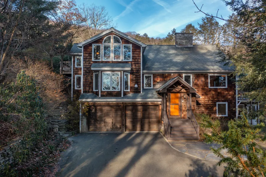 Discover this exceptional contemporary home located just outside Williamsburg Center, only 15 minutes from Northampton. Set on over 4 acres, it combines privacy with easy access to restaurants and shops. Recently refreshed, this 4-bedroom home features a ground-floor private suite, a spacious home office with its own entrance, and expansive living areas with high-quality finishes. A standout attraction is the two-story hillside cottage/studio with year-round access, a hot tub, and a sauna for your guests to enjoy. The barn/workshop, built by renowned contractor Jim Locke, offers access to a fenced-in paddock. Home has multiple decks for relaxation, this property is your serene oasis waiting to be claimed!